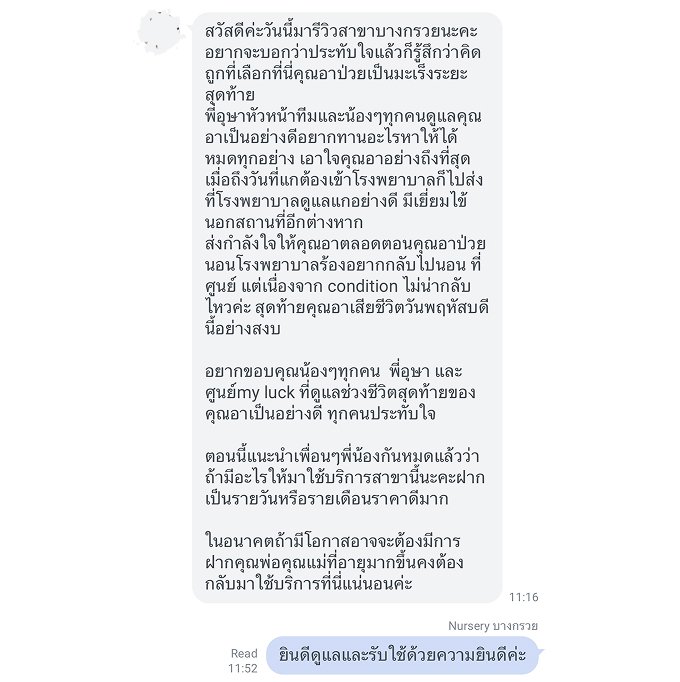 | อาหาร 3 มื้อ หรือ อาหารปั่นทางสายยาง | ✅ ฟรี ในค่าบริการ |